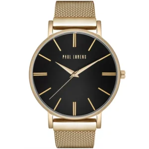 A Paul Lorens női karóra elegáns ötvözete a klasszikus formáknak és a modern olasz ihletésű dizájnnak. A 42 mm-es, mindössze 6,5 mm vastag aranyszínű tok fekete számlapot keretez, amelyen finom arany indexek teszik jól leolvashatóvá az időt. A japán MIYOTA kvarc szerkezet megbízható pontosságot garantál, míg a mineralüveg és a 30 m vízállóság védelmet nyújt a mindennapok során. Az állítható arany mesh szíj IPG antiallergén bevonattal készült, így kényelmes viselet az érzékeny bőrűeknek is.