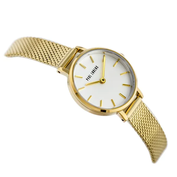 Paul Lorens női karóra, arany színű acél szíjjal, fehér számlappal