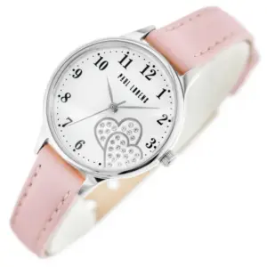 Elegáns, könnyen kombinálható női karóra japán kvarc szerkezettel, bőr szíjjal és jól viselhető, 30 mm-es tokkal. A fehér, szív mintás számlap és a rózsaszín szíj különleges, nőies megjelenést ad a mindennapokra és ajándéknak is remek választás.