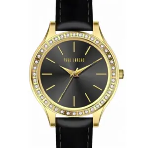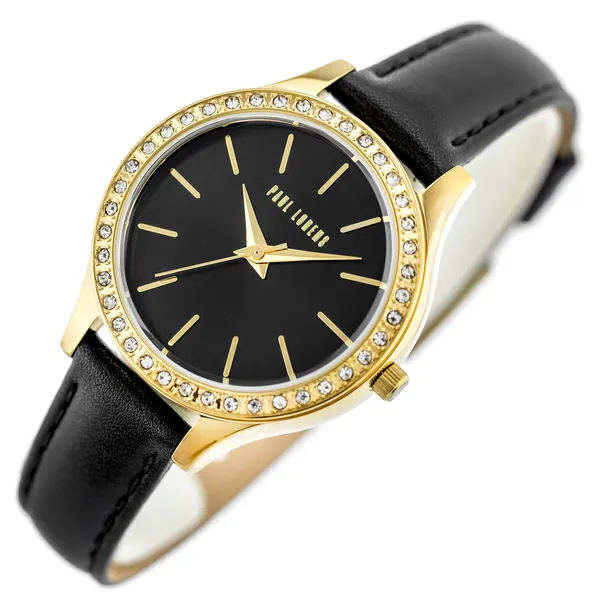 Paul Lorens női karóra fekete bőrszíjjal, arany tok, 34 mm