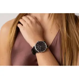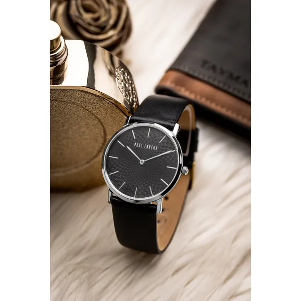 Paul Lorens női karóra fekete bőrszíjjal, fekete számlappal