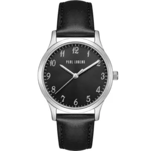 Paul Lorens női karóra fekete bőrszíjjal, fekete számlappal