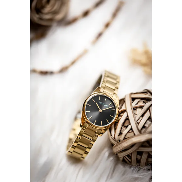 Paul Lorens női karóra, fekete számlap, arany acél szíj, 28 mm