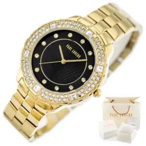 A Paul Lorens PL8527B2-1D1 női karóra az elegáns megjelenést és a megbízható működést ötvözi. Letisztult, mégis látványos kialakítása jól illik a modern és a klasszikus öltözékekhez is. A fekete számlap, az aranyszínű tok és az aranyszínű acél szíj harmonikus összhatást teremt, míg a cirkóniákkal díszített tok még kifinomultabb megjelenést ad.