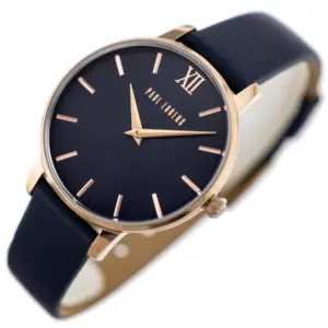 Elegáns, sötétkék és rózsaarany színvilágú női karóra, amely kifinomult megjelenést és kényelmes viseletet kínál a hétköznapokban. A megbízható japán kvarc szerkezet, a bőrszíj és az ajándékcsomagolás együtt különösen vonzó választássá teszik.