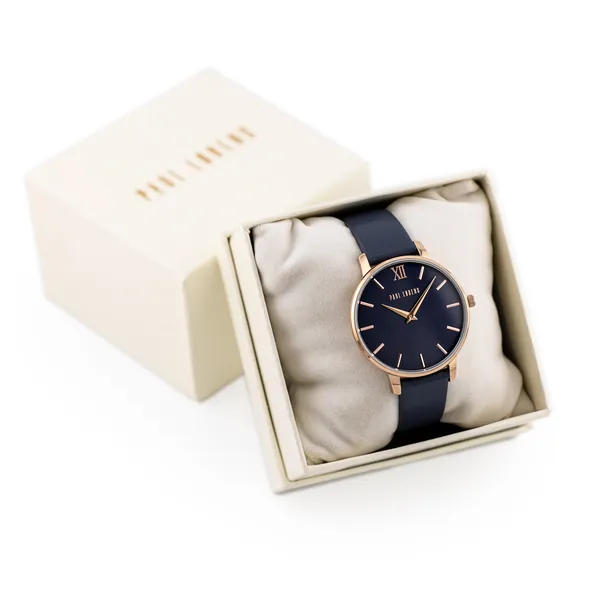 Paul Lorens női karóra, kék bőrszíj, kék számlap, rózsaarany tok 38 mm