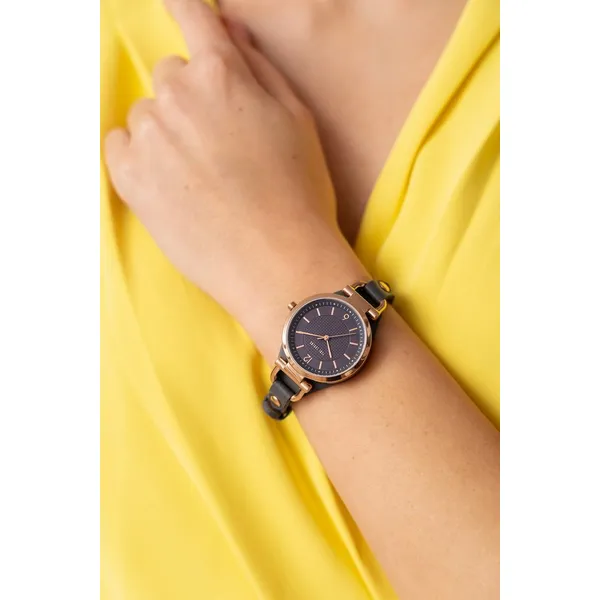 Az órát megbízható, elemmel működő japán Miyota кварc szerkezet hajtja, amely pontos időmérést biztosít. A letisztult, könnyen leolvasható szürke számlap és a rózsaarany indexek harmonikus, nőies összhatást teremtenek. A modell ásványi üveggel és WR30 vízállósággal készült, így ideális választás hétköznapi használatra.