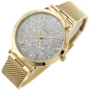 Elegáns, arany színű rozsdamentes acél kivitelével és ezüst, cirkóniás számlapjával kifinomult megjelenést ad minden öltözékhez. A japán kvarc szerkezet, az állítható hálós szíj és az ajándék díszdoboz egyszerre teszi praktikus és stílusos választássá.