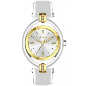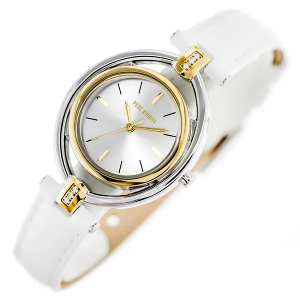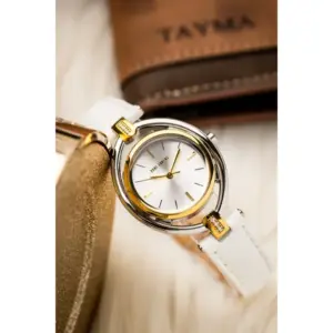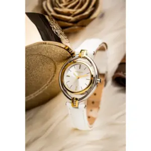 Az időtálló dizájn a klasszikus részleteket modern hatással párosítja, így ideális választás azoknak, akik kifinomult megjelenésre és egyedi stílusra vágynak. A fehér bőrszíj, az ezüst színű számlap és a kéttónusú tok elegáns, nőies összhatást teremt.