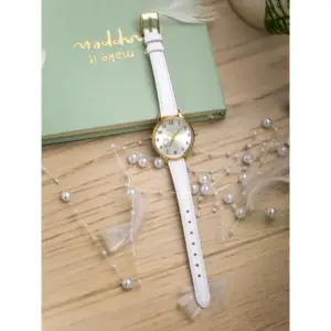 • Fehér bőrszíj nőies, könnyen kombinálható stílusban
