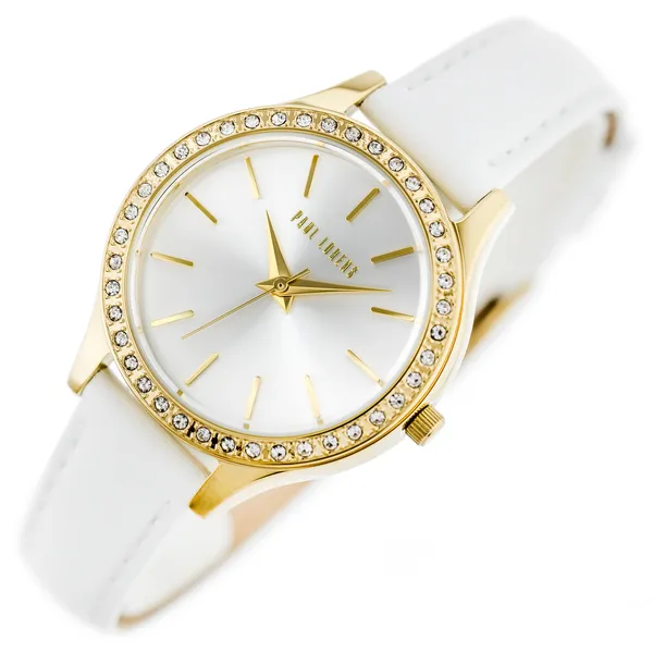 Paul Lorens női kvarc karóra, fehér bőrszíj, ezüst számlap, 34 mm