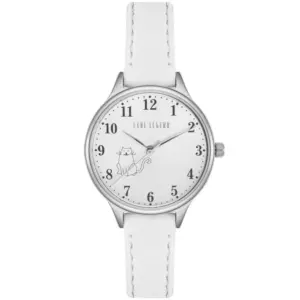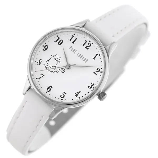 Paul Lorens női kvarc karóra, fehér bőrszíj, macskás számlap
