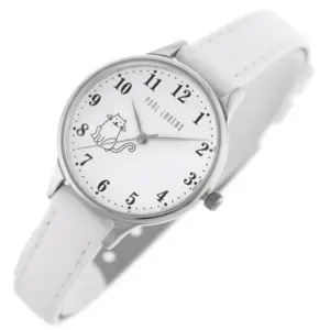 Elegáns és játékos választás a mindennapokra: a fehér bőrszíj, a macskás számlap és a karcsú kialakítás kényelmes viseletet és egyedi megjelenést ad. Megbízható kvarc szerkezete és ajándék díszdoboza miatt saját részre és ajándéknak is remek döntés.