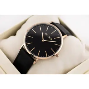 Elegáns, nőies karóra fekete bőrszíjjal és fekete-rózsaarany színvilággal, amely könnyen kombinálható mindennapi és alkalmi öltözékekhez. Pontos japán kvarc szerkezete és antiallergén bevonata kényelmes, megbízható viseletet biztosít.