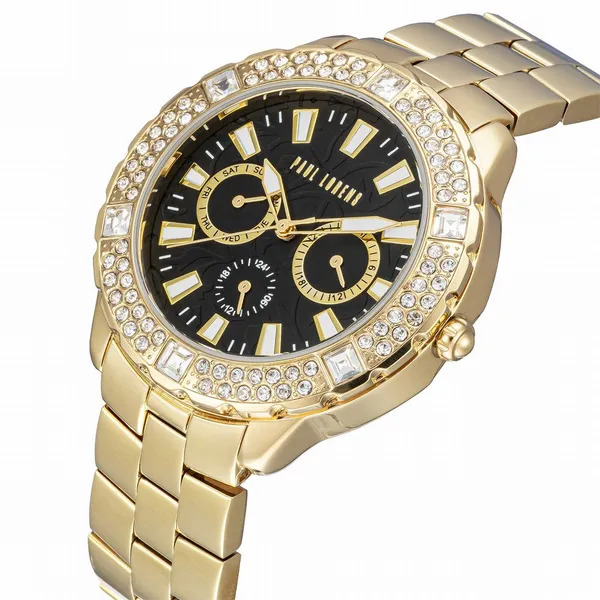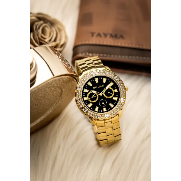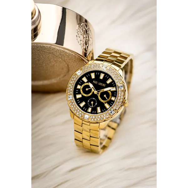 Paul Lorens női kvarc karóra, fekete számlap, arany fém szíj