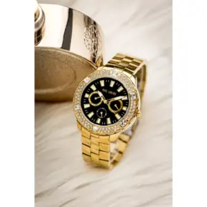 Elegáns, fekete-arany színvilágú női karóra, amely könnyen kombinálható mindennapi és alkalmi öltözékkel. A japán kvarc szerkezet, az antiallergén bevonat és a díszdoboz együtt praktikus és stílusos választássá teszik.