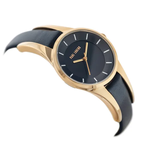Paul Lorens női kvarc karóra, kék bőrszíj, kék számlap, rózsaarany tok