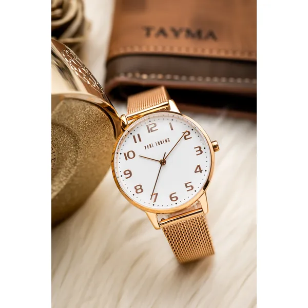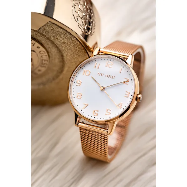 Paul Lorens női kvarc karóra, rozéarany fém szíj, fehér számlap