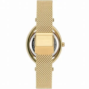 A 30 méterig cseppálló óra edzett ásványi üveggel és antiallergén IPG bevonattal készül, hogy hosszú távon is megőrizze ragyogását és kényelmét. Letisztult, aranyszínű számlapján pont indexek segítik a gyors leolvasást, a keskenyedő 14/12 mm-es karkötő pedig biztosan illeszkedik akár 18 cm-es csuklóra is.