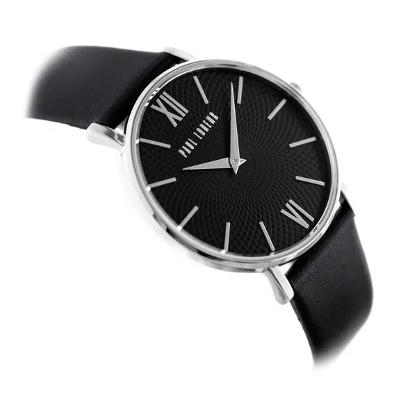 Paul Lorens uniszex kvarc karóra, fekete bőrszíj, 40 mm