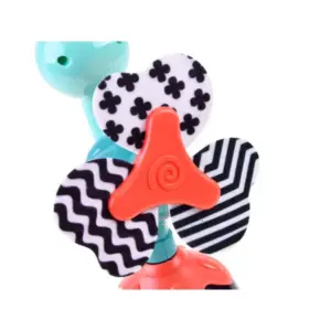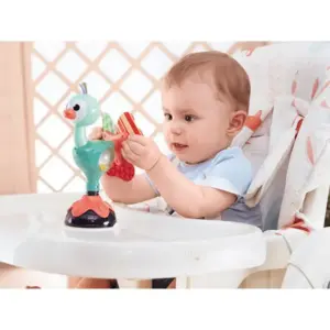 Tapadókoronggal rögzíthető, forgatható csörgő, ami etetés közben is leköti a babát, és finom hangjával, élénk színeivel szórakoztat. Segíti a kéz-szem koordinációt és a finommotorikát, miközben biztonságos, könnyen tisztítható játékélményt ad.