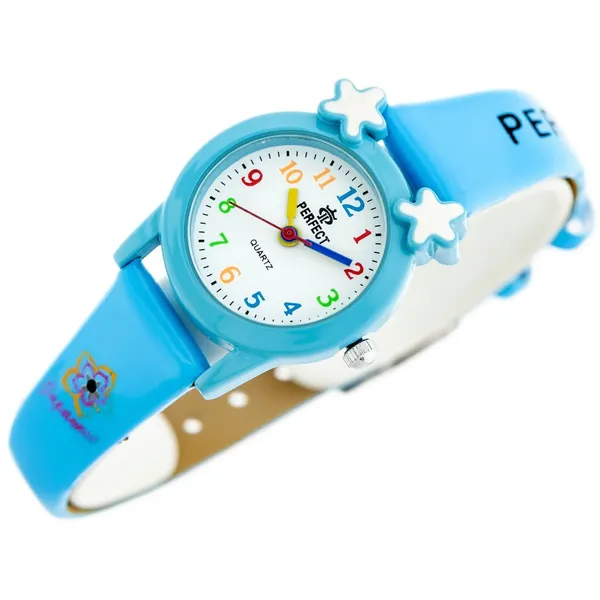 Perfect A949 kislány karóra, kék bőrszíjjal, fehér számlappal
