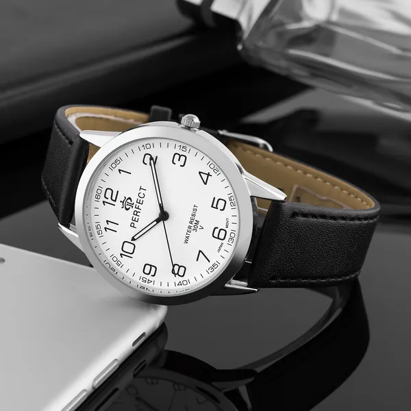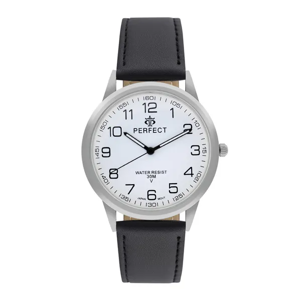 A Perfect férfi karóra letisztult, időtálló választás a mindennapokra. Az ezüstszínű tok és a fehér számlap elegáns megjelenést biztosít, így könnyen illeszthető üzleti és hétköznapi öltözékhez is.