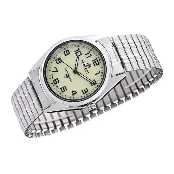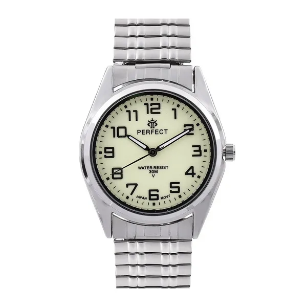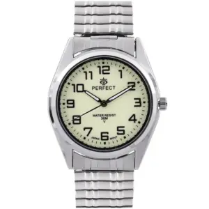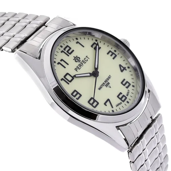 Perfect férfi karóra ezüst tokkal, foszforeszkáló számlappal