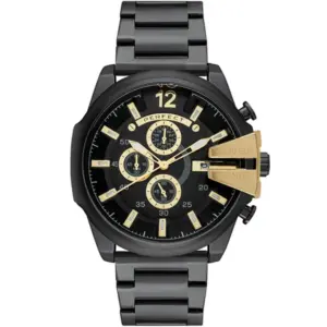 Perfect férfi kvarc karóra kronográffal, fekete-arany fémszíj