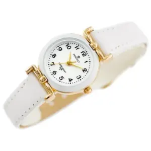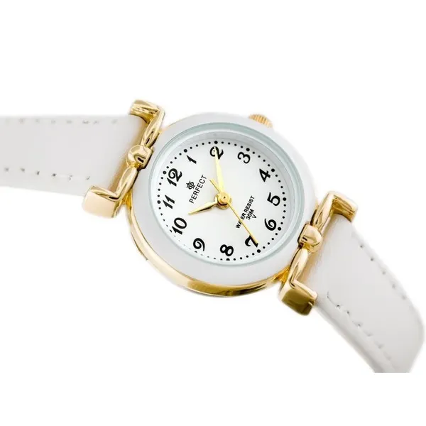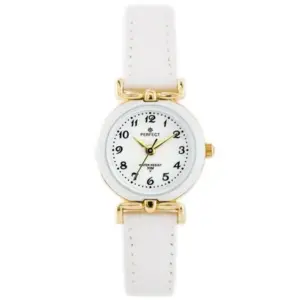 A Perfect gyermek karóra finom, időtálló modell, amely kiváló választás elsőáldozási ajándéknak. A visszafogott, elegáns megjelenést a fehér számlap, a fehér bőrszíj és az aranyszínű tok teszi különlegessé, így ünnepi alkalmakhoz és hétköznapi viselethez is jól illik.