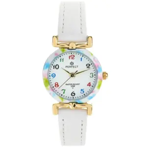A Perfect gyermek karóra finom, időtálló megjelenésű modell, amely kiváló választás elsőáldozási ajándéknak. A fehér számlap, a fehér szíj és az aranyszínű tok elegáns, ünnepi összhatást teremt, ezért különösen szép meglepetés lehet egy fontos alkalomra. A termék fehér díszdobozban érkezik, így ajándékozásra azonnal kész.