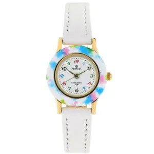 A Perfect gyermek karóra finom, időtálló megjelenésű modell, amely különösen szép választás elsőáldozási ajándéknak. A fehér számlap, a fehér szíj és az aranyszínű tok elegáns, ünnepi összhatást ad, ezért alkalmi viselethez és mindennapi használathoz is jól illik.