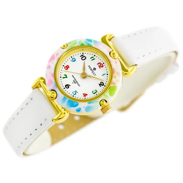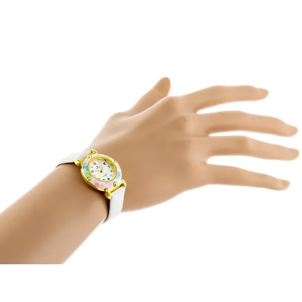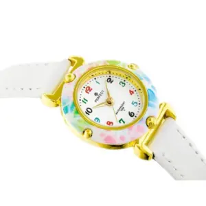 Aranyos és praktikus gyermek karóra lányoknak, amely jól olvasható, színes számokkal segíti az idő tanulását. A fehér számlap, a fehér bőrszíj és az aranyszínű tok harmonikus, elegáns megjelenést ad a mindennapi viselethez.