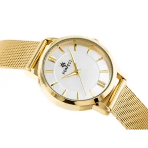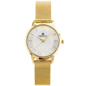 A Perfect női karóra elegáns, klasszikus megjelenést kínál a mindennapokra és alkalmi viselethez is. Az aranyszínű tok és fém szíj harmonikusan egészül ki az ezüst színű számlappal, így könnyen kombinálható különböző öltözékekkel.
