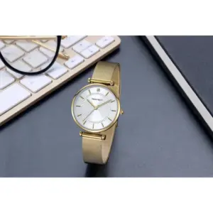 Ez a női karóra elegáns, aranyszínű megjelenésével és ezüst színű számlapjával kifinomult hatást kelt. A japán кварc szerkezet pontos időmérést biztosít, a fém szíj pedig tartós és kényelmes viseletet nyújt.