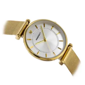Perfect női кварc karóra, aranyszínű fémszíjjal, ezüst számlap