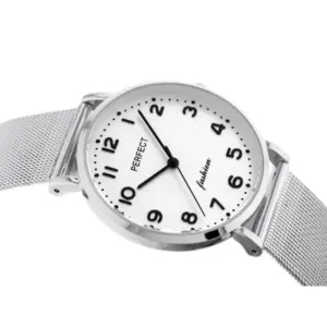 Perfect női кварc karóra ezüst számlappal, acélhálós szíjjal