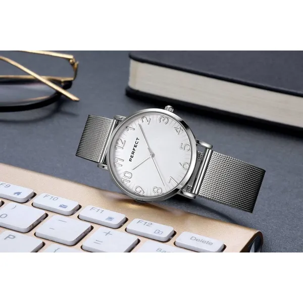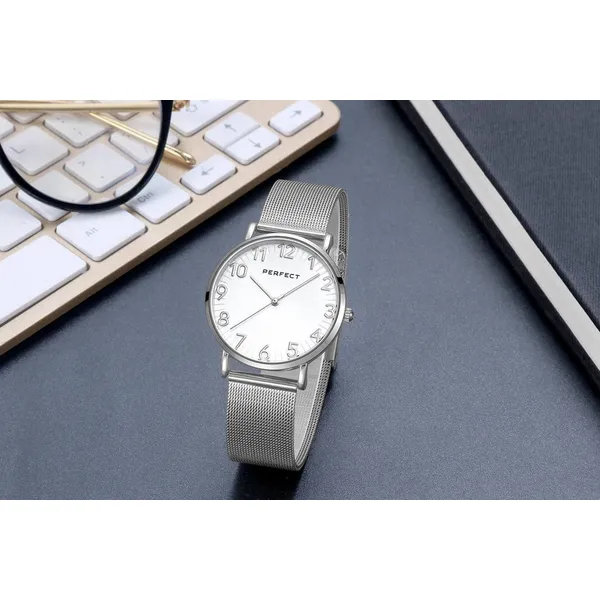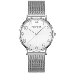 A Perfect női karóra elegáns, sokoldalúan viselhető modell, amely ideális választás a mindennapokra és alkalmi megjelenéshez is. Letisztult ezüst színvilága, kerek tokja és fém szíja időtálló megjelenést biztosít, míg a japán gyártású kvarc szerkezet pontos működésről gondoskodik.