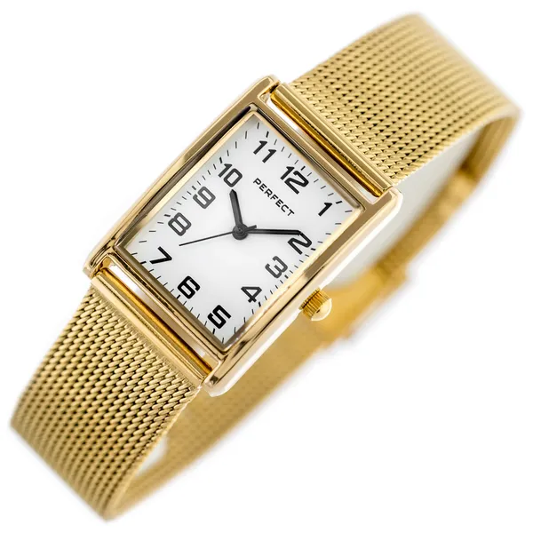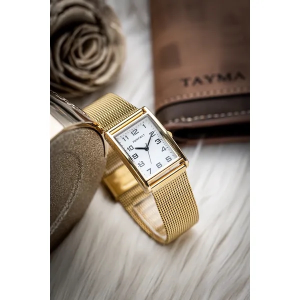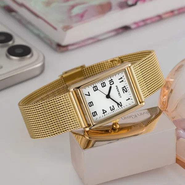A Perfect női karóra elegáns, időtálló választás a mindennapokra és alkalmi viselethez is. Az arany színű tok és szíj harmonikusan illeszkedik a világos számlaphoz, így a modell könnyen kombinálható különböző öltözékekkel. A megbízható japán kvarc szerkezet pontos működést biztosít, a mineralüveg pedig segít megóvni az órát a hétköznapi használat során.