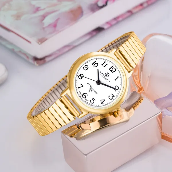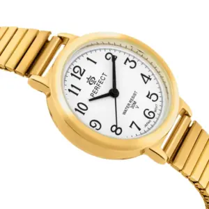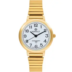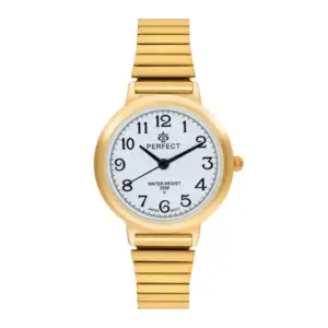 Perfect női karóra elegáns, letisztult megjelenéssel. Az aranyszínű tok és a fehér számlap klasszikus összhatást teremt, így a modell remek választás mindennapi viselethez és alkalmi öltözékhez is.
