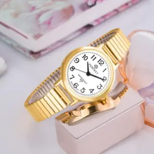 Elegáns, aranyszínű női karóra fehér számlappal, amely könnyen illik hétköznapi és alkalmi öltözékhez is. A megbízható Miyota szerkezet, a minerálüveg és az antiallergén bevonat kényelmes, praktikus viseletet kínál minden nap.