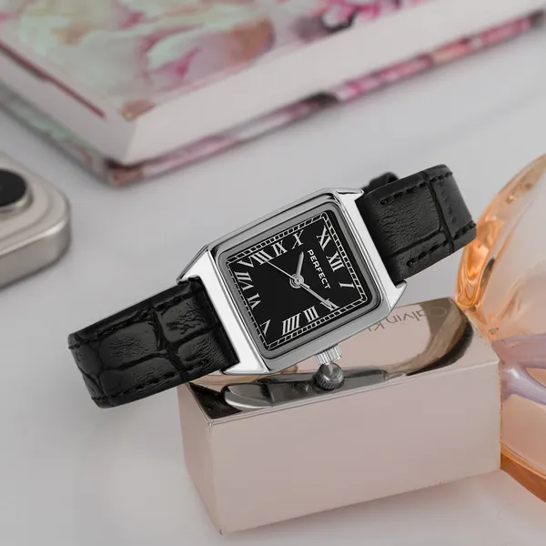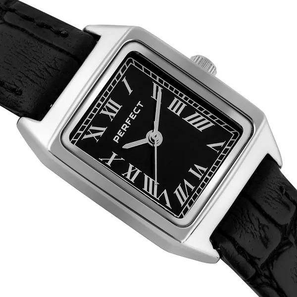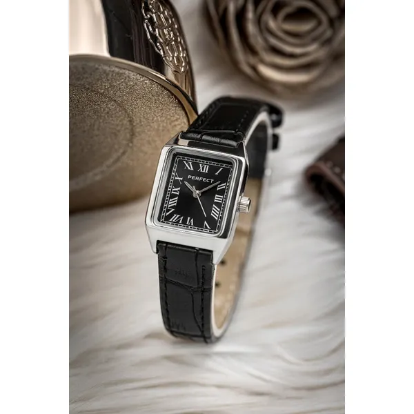 A Perfect női karóra elegáns és időtálló választás a mindennapokra és alkalmi megjelenéshez egyaránt. A klasszikus fekete számlap, az ezüstszínű tok és a fekete valódi bőrszíj harmonikus összhatást teremt, így könnyen kombinálható különféle öltözékekkel.