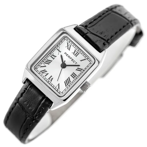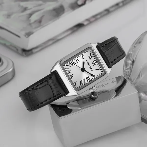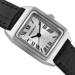 A Perfect női karóra elegáns és időtálló választás a mindennapokra. A letisztult, ezüst színű számlap, a fekete bőrszíj és az ezüstszínű tok harmonikus megjelenést biztosít, így az óra könnyen illeszthető üzleti, alkalmi vagy hétköznapi öltözékhez.
