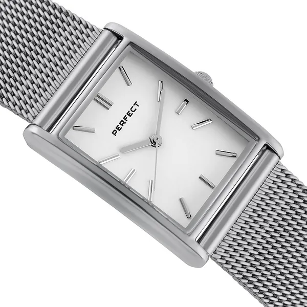 A Perfect női karóra elegáns, időtálló választás a mindennapokra és alkalmi viselethez is. Az ezüstszínű tok, számlap és szíj letisztult megjelenést ad, így könnyen kombinálható különböző öltözékekkel.