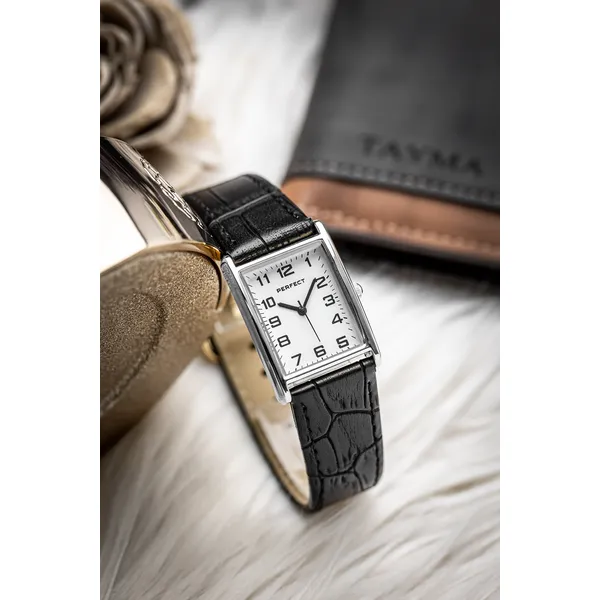 A Perfect női karóra elegáns és időtálló választás a mindennapokra. A letisztult fehér számlap, az ezüstszínű tok és a fekete bőrszíj harmonikus megjelenést biztosít, így a modell könnyen kombinálható üzleti, alkalmi vagy hétköznapi öltözékkel.