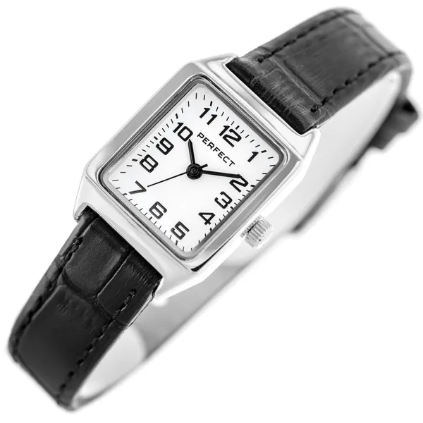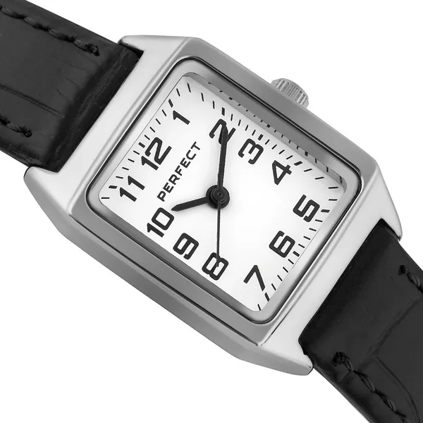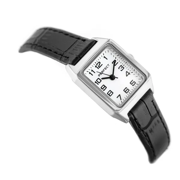 Perfect női karóra fehér számlappal, fekete bőrszíjjal