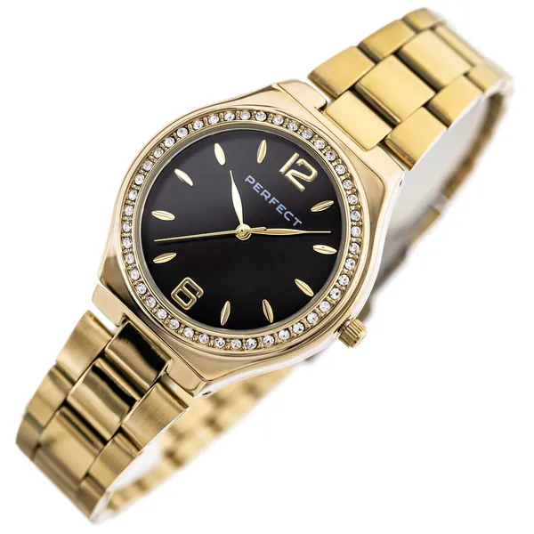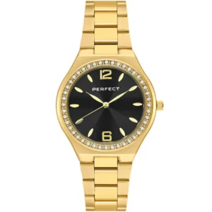 Perfect női karóra S390-03, arany fém szíj, fekete számlap, 34 mm