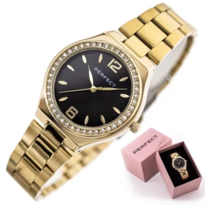 A Perfect márka 1994 óta készít megbízható, mindennapi és alkalmi viseletre is ideális karórákat. A japán Miyota kvarc szerkezetnek köszönhetően a S390-03 modell pontosan jár, az aranyszínű fém szíj és a kristályokkal díszített tok pedig elegáns megjelenést kölcsönöz.