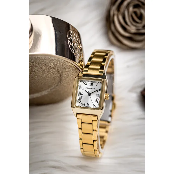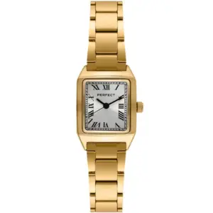 Perfect női kvarc karóra aranyszínű tokkal és szíjjal, ezüst számlappal