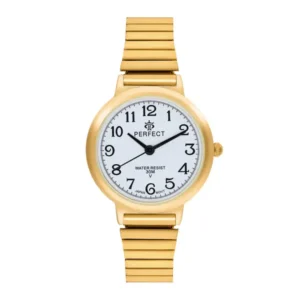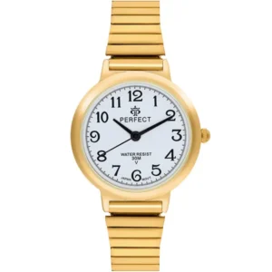 Az elegáns Perfect X283-03 női karóra aranyszínű, 30 mm-es tokjával és klasszikus fehér számlapjával letisztult, időtlen megjelenést kölcsönöz. A karcálló ásványi üveg és a megbízható japán Miyota 2035 kvarc szerkezet hosszú távon is pontos működést garantál. Allergiamentes bevonata révén érzékeny bőrűek is kényelmesen viselhetik.